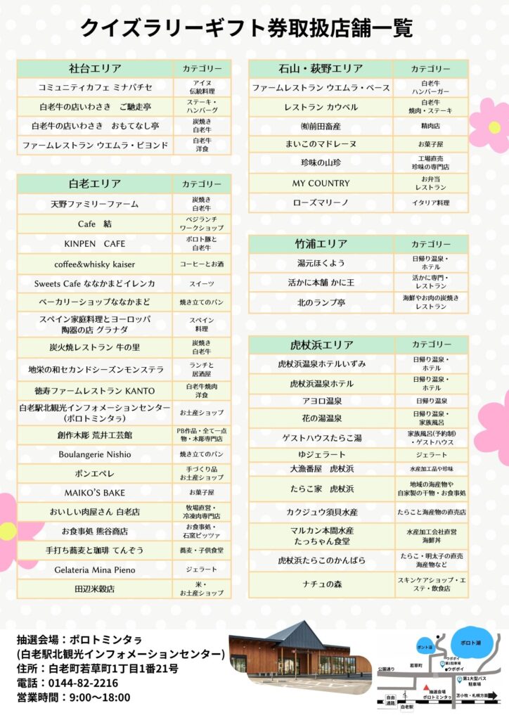 こんにちは!みなさん、ゴールデンウィークの予定はもう決まりましたか?白老観光協会が主催する「ハッピーゴールデンウィーク白老クイズラリー」が、今年も開催されます!